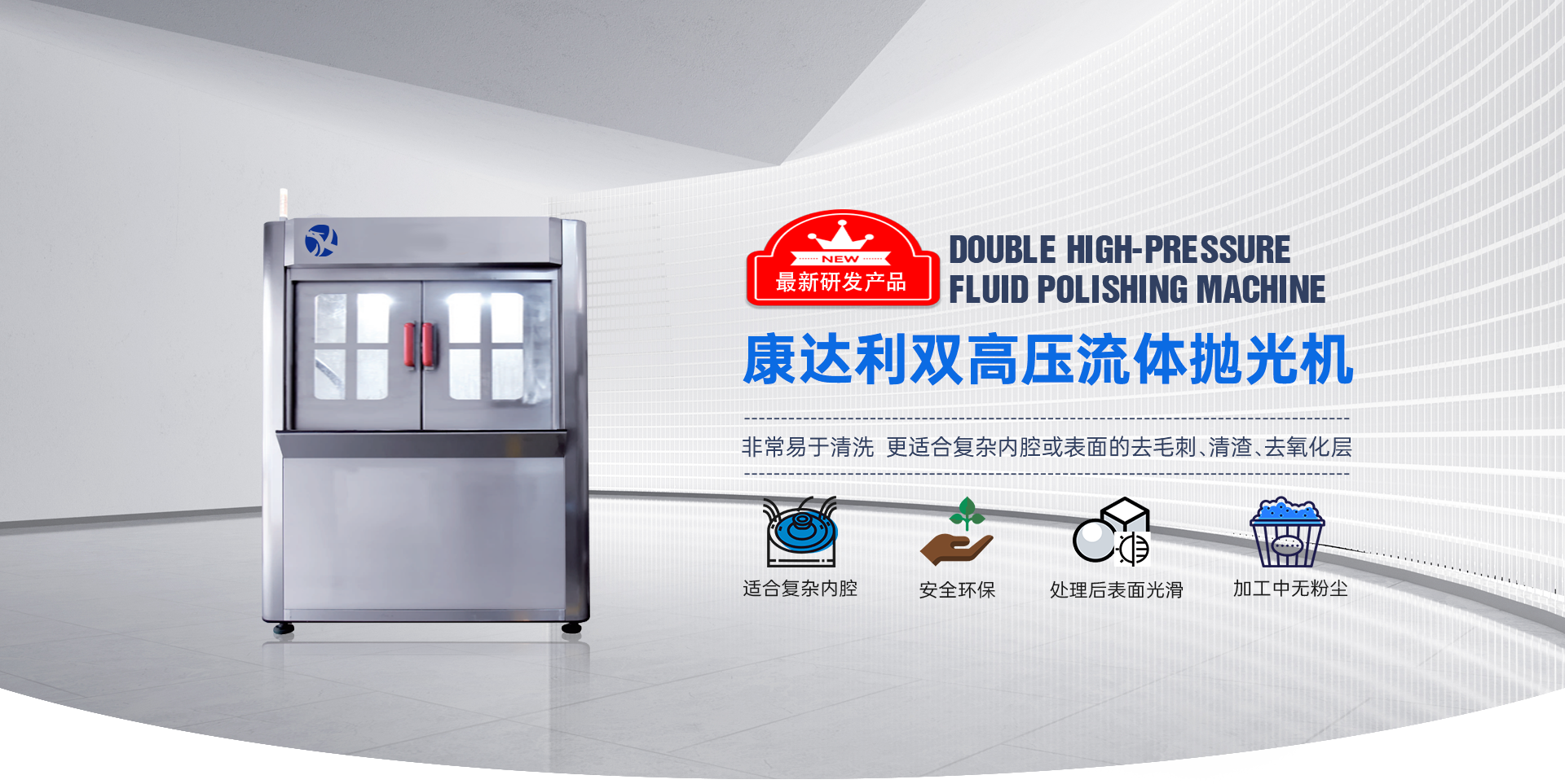 康达利动力科技公司是为专业解决模具内腔表面去毛刺、镜面抛光的微处理,此抛光方式是欧洲业界根据挤压原理设计的一款采用软件磨料抛光的机械,是创新的弹流体研磨技术,集中了欧洲技术之精华,属微米精机。 该抛光机以上下运动挤压,使弹磨料流过加工面或者内孔,并做往复运动来进行加工镜面的微处理。